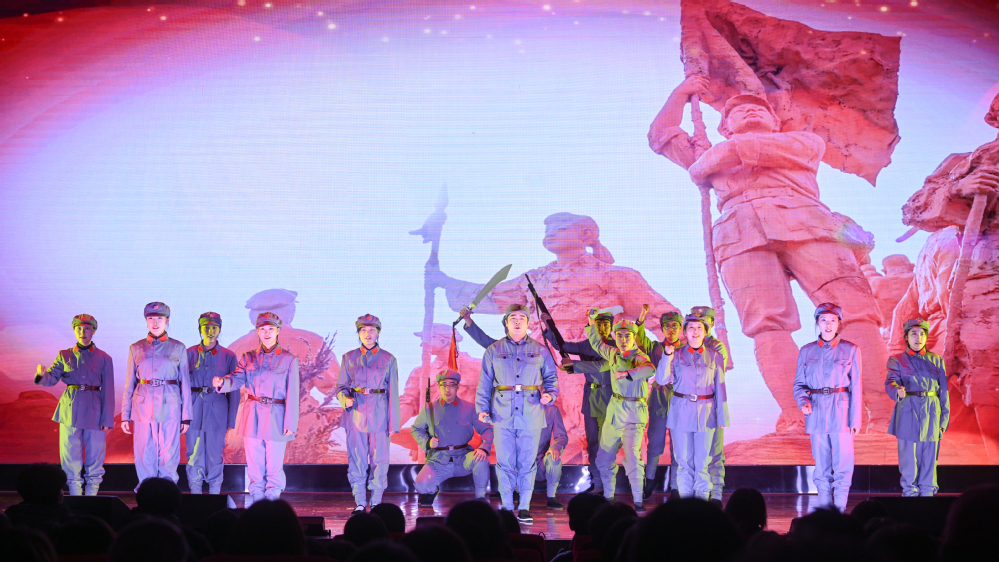 西北师范大学师生演员精准把控历史脉络与时代背景,通过精湛的话剧情景表演、激昂的音乐舞蹈演绎,生动再现了“九一八事变”的山河破碎、“一二·九运动”的青春呐喊、“七七事变”的全民觉醒、“淞沪会战”的浴血坚守、“平型关大捷”的振奋人心等九个关键历史瞬间。他们以细腻传神的演技、饱含深情的台词,将经典红色剧目搬上校园舞台。一句句铿锵有力的台词、一个个生动鲜活的角色、一段段感人至深的情节,将先辈们为理想信念拼搏的峥嵘岁月娓娓道来,生动再现了革命先辈为理想信念奋勇拼搏的峥嵘岁月。将革命先辈的家国情怀、不屈意志通过舞台艺术立体呈现,让在场师生沉浸式感受那段热血沸腾的历史瞬间。