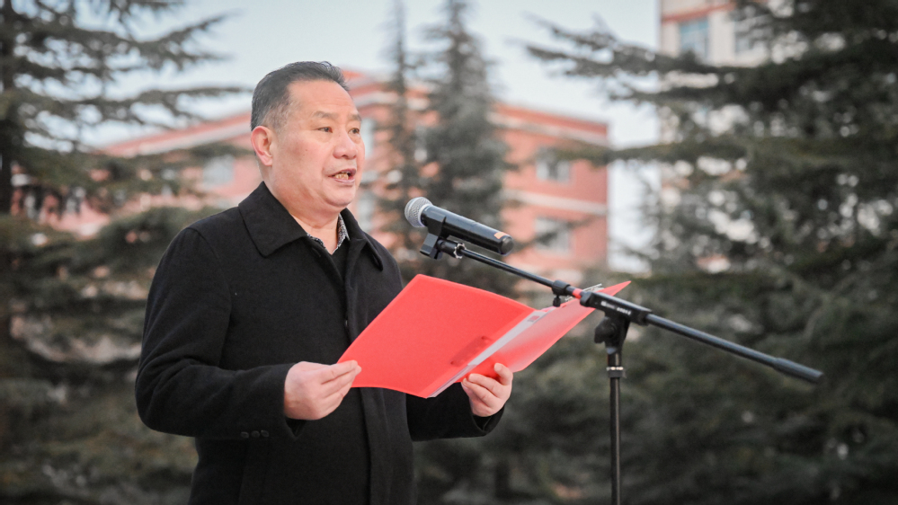 随后,雒建子作了讲话。他强调,“一二·九”运动是中国共产党领导的一次重要学生爱国运动,展现了青年一代在国家危难时刻的历史担当。他对全体同学提出三点希望:一是心怀“国之大者”,立青春之志,将个人的理想追求与祖国和人民的需要紧紧相连;二是锤炼“行之力者”,夯实青春之基,在实践中增长智慧才干;三是勇做“时代之先”,贡献青春之力,在奋斗中锤炼意志品质。同时,他希望全体学生从“一二·九”精神中汲取前行的力量,将爱国情、强国志、报国行自觉融入今后的学习与生活,以坚定的信念、过硬的本领、昂扬的姿态,在时代的洪流中书写无愧于历史、无愧于人民的青春华章。