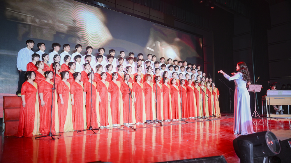 为追溯“一二·九”运动光辉足迹,缅怀革命先烈,凝聚奋进力量。2025年12月9日晚,学校在学术报告厅举行“唱响红色经典 凝聚奋进力量”纪念“一二·九”运动九十周年红歌合唱比赛。本次活动作为学校爱国主义教育系列活动的重要组成部分,旨在通过合唱的形式引导广大师生铭记历史、砥砺奋进,凝聚起推动学校发展的强大精神动力。党委书记雒建子,校长王华栋,常务副校长马义哈,党委副书记郇东,纪委书记高仁杰,副校长王治和,各学院党委书记、团总支书记以及800余名学生共同观看了合唱比赛。