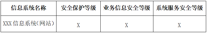信息系统(网站)的安全保护等级由业务信息安全等级和系统服务安全等级较高者决定,最终确定XXX系统(网站)安全保护等级为第几级。