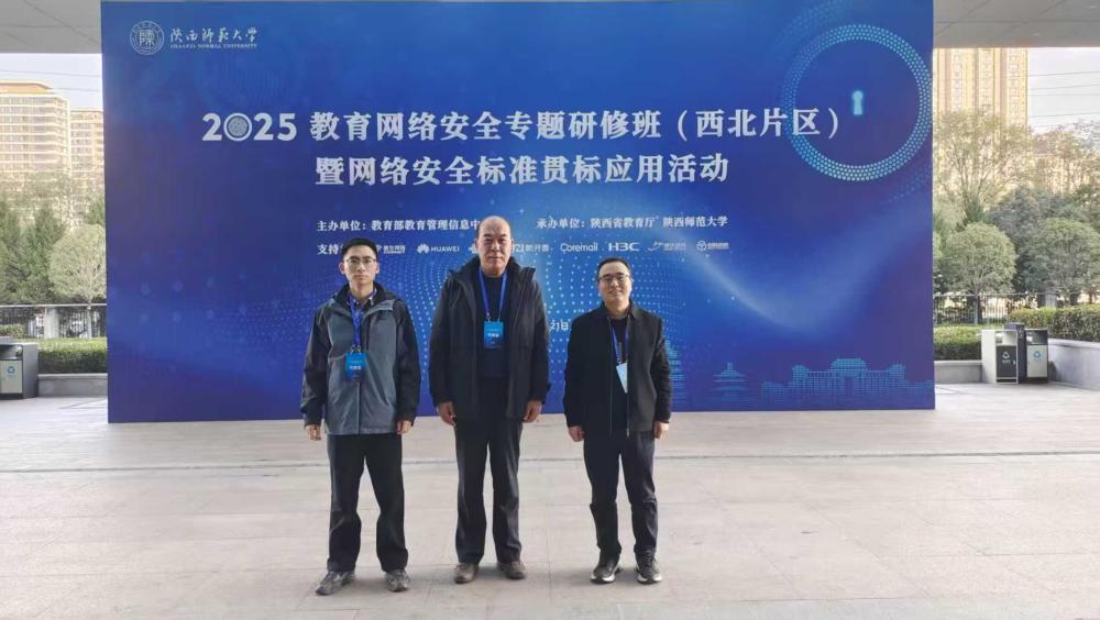 为深入贯彻全面落实《中华人民共和国网络安全法》,《中华人民共和国数据安全法》,《中华人民共和国个人信息保护法》等法律法规, 2025年11月20日,由教育部教育管理信息中心主办,陕西省教育厅,陕西师范大学承办的《2025年教育网络安全专题研修班(西北片区)暨网络安全标准贯标应用活动》在陕西西安隆重举行。我校网络安全与信息化建设办公室主任及相关技术骨干应邀参会,与西北片区各省市级230余位教育行政部门及院校网络安全负责人参会共聚一堂,围绕“国家教育数字化战略安全保障要求和网络安全领域技术前沿”进行专题培训。