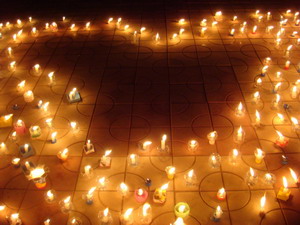 在五月十二号震惊中外的汶川大地震一周年纪念日来临之际,我系团总支和学生分会举行了一系列纪念活动,在五月十二日晚,全系师生在喷泉广场举行了烛光纪念活动。在哀痛的音乐和悲情的悼念词中,大家向地震遇难者表示了深切的爱到和追思。每位参与者点燃蜡烛,心情随着音乐和悼词变得十分沉痛,而且自己的感情在这一刻得到了升华。另外,系团总支还组织各团支部书写寄托哀思的贴纸,收齐后粘贴摆放成桃心状,置放于系教学楼四楼。