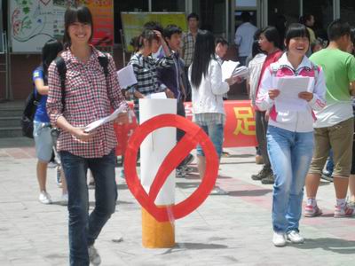2011年5月31日是第24个世界无烟日,为号召同学们积极响应学院“严禁在校园吸烟”的规定,足迹历史社团于当日中午12时,在丰膳斋前举行了“无烟校园,清新一片”主题宣传活动。