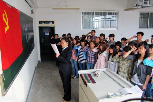 最后,我们举行了外国语言文学系党总支党员宣誓大会。在党旗下,本学期发展的30名新发展党员大声宣读誓词,同时支部书记为这30名党员佩戴了党徽,让他们铭记“我是党员、向我看齐”的口号。