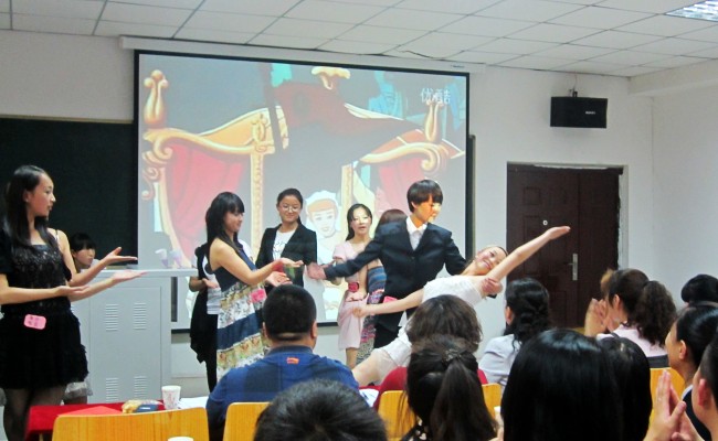 比赛开始后,选手们用他们业余却极富有娱乐性的戏剧表演将各个人物刻画的生动逼真、活灵活现,构成了一个个动人幽默的故事,吸引了在场的每一位观众。2010级英语(教育方向)3班《现代版灰姑娘》,通过诙谐、幽默、夸张的反串主角表演,赢得了全场热烈的掌声,最终获得了本次大赛一等奖。