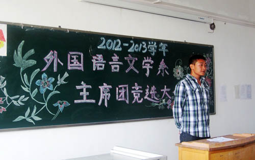 10月11日下午,2012-2013学年外国语言文学系团总支、学生分会主席团竞选大会在明辨楼607 教室召开。外国语言文学系党总支书记杨天斌,党总支副书记、行政副主任刘海娟,教学副主任杨彦文、团总支书记陈玉龙,党政秘书刘涛以及徐晓婕老师参加了本次竞选大会。会议由外国语言文学系团总支副书记张懿瑶同学主持。