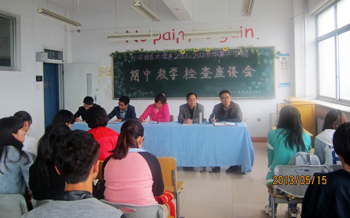 我系于2013年5月15日下午在明辨楼513教室举行了2012-2013学年第二学期期中教学检查学生座谈会,我系主任王丽涛、党总支书记杨天斌、教学副主任权志成、教学副主任杨彦文和教学秘书王亚兵及2010级、2011级、2012级各班学生代表参加了此次座谈会。此次座谈会由我系教学副主任权志成主持。