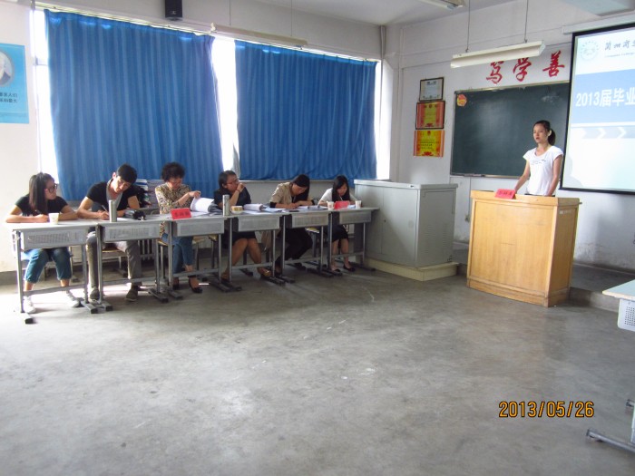 我系2013届毕业生毕业论文答辩于2013年5月26日分4组在明辨楼五楼举行,我系170多名毕业生参加了此次毕业论文答辩。