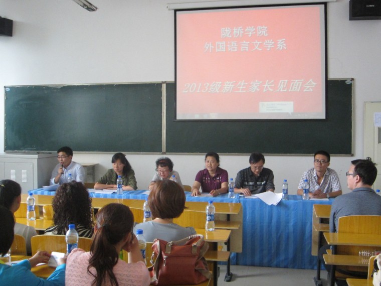 会上,王丽涛主任首先对我院概况、系部基本情况、师资配备等情况向家长进行了说明。她强调通过多年的发展外国语言文学系建立起一支技术能力过硬的师资队伍,在教授委员会各位教授的指导下,完全有能力完成学院对于英语教学的相关要求。孙爱玲教授对于外国语言文学系英语专业的课程设置进行了介绍。方向明教授对于英语专业在大学期间如何提高语音、听力等方面的能力做了细致的说明,她强调大学外语的学习关键在于加强听说能力的培养,语音语调是检验外语专业学生专业能力的重要指标之一。杨天斌书记就国家奖学金、国家励志奖学金、国家助学金、学院奖学金等国家和学院资助奖励项目以及学院学生管理制度逐一进行了说明,并对学院学士学位授予的条件进行解释。对于家长关心的问题进行说明。