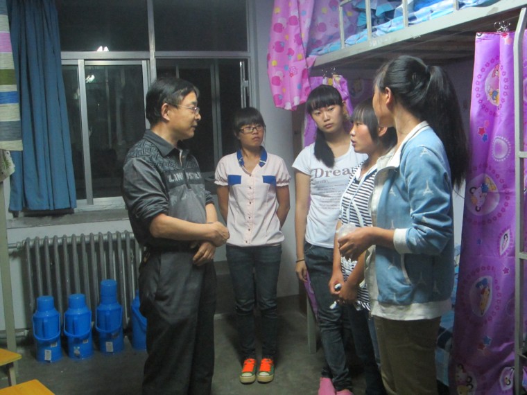 2013年9月1日晚,外国语言文学系主任王丽涛,党总支书记杨天斌,教学副主任权志成,新生班辅导员蔡婧婧和部分学生干部到6号学生公寓、3号学生公寓看望2013级新生。