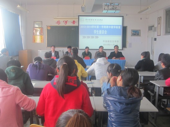 为更全面、更深入地了解我系教师的教学状况、学生的学习情况,切实提高我系的教学质量,我系于2013年11月1日(第10周星期五)下午在明辨楼509教室召开了2013-2014学年第一学期期中教学检查学生座谈会。我系主任王丽涛、党总支书记杨天斌、教学副主任权志成、教学副主任杨彦文、教学秘书王亚兵及各班的学生代表参加了此次座谈会。此次会议由我系教学副主任权志成主持召开。