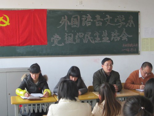 2014年3月12日下午,外国语言文学系党总支学生第一党支部和学生第二党支部民主生活会在四号教学楼609教室举行。参加会议的有外国语言文学系党总支书记杨天斌,学生第一党支部书记刘涛,学生第二党支部书记蔡婧婧,各学生支部负责人和全体学生党员。会议由刘涛老师主持。