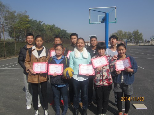 为了加强我系学生之间的学习与交流,增进彼此之间的感情,促进大学生体育运动的发展,我系顺利完成了第五届系内排球赛。2014年11月3日中午12:00我系在排球场举行了“第五届系内排球赛颁奖仪式”。系党总支书记杨天斌、团总支书记蔡婧婧和外语系团学干部获奖的选手们参加了此次颁奖仪式。在学生会主席郭志鹏的主持下,颁奖仪式正式开始。