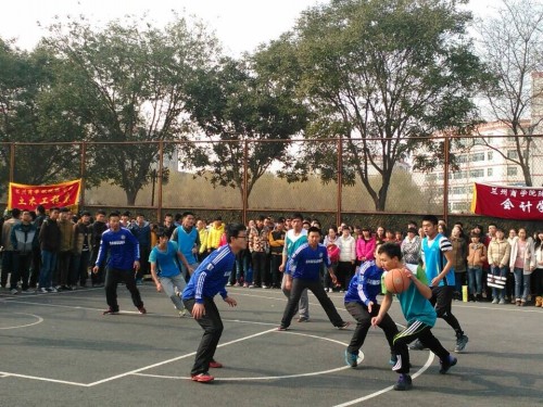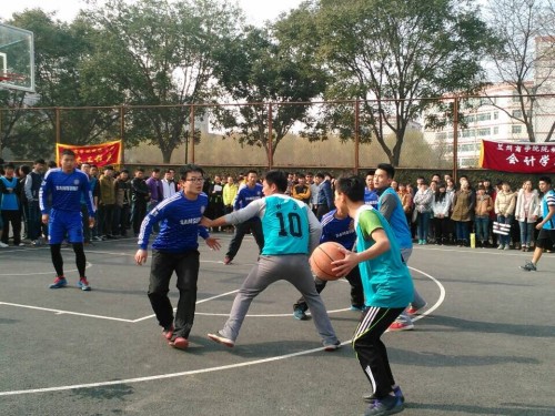 为丰富大学生的课余生活,进一步推动体育活动开展,增强团队精神和凝聚力,同时加强各系交流,增进友谊。2014年11月18日中午12:30外国语言文学系与会计系、经济贸易系代表队间的篮球比赛在篮球场顺利展开。