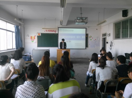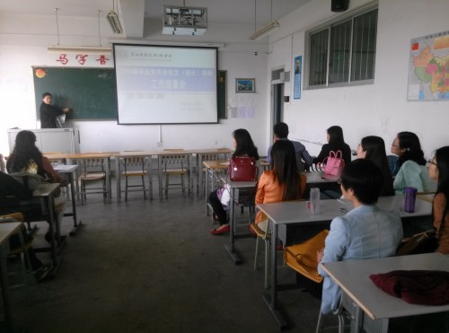 早上8时,所有参加答辩的老师汇聚明辨楼509教室召开“外国语言文学系2015届本科毕业论文答辩工作部署会”。会上,答辩委员会主任孙爱玲副教授详细安排了本次论文答辩的各项工作,孙爱玲副教授还重申了本次答辩的评分标准以及五级评分的分数段,她强调,希望各位老师严格把关,圆满完成本次论文答辩工作。