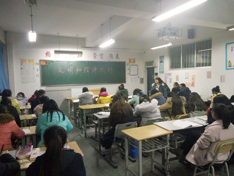 辅导员蔡婧婧老师和杨文娟老师依次对上周大一,大二学生宿舍卫生检查情况作出总结,将卫生差的宿舍加以批判与指正,卫生好的宿舍点名表扬,希望大家之后能将宿舍环境当作自己的家一样收拾整洁干净。强调宿舍的卫生及违规电器的使用情况与学生们的评奖评优有着极其密切的关系,希望大家时刻遵守学校的规定。时至期末,两位老师对期末考试提出具体要求明细考试规则。要求学生遵守考试纪律,文明考试,不作弊,认真答卷。之后,老师分别让同学们谈谈自己对文明行为的认知。对于当代大学生,如何要做到举止文明,谈吐文雅,是每位学生都应重视的问题。最后,老师提醒在节假日期间要出去游玩儿的学生们做好安全防范措施,也希望学生们趁着假期的闲暇时间,能出去看看外面的世界,开阔自己的眼界,丰富自己的生活,做一个有自己独到眼光的大学生。