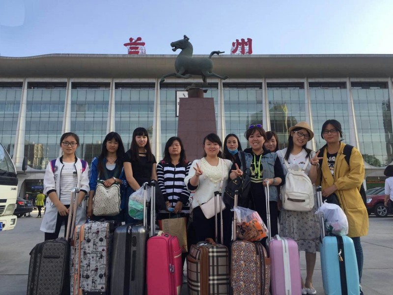2016年5月16日晚上19点,外国语言文学系党总支书记周海燕老师以及2013级辅导员蔡婧婧老师陪同我系2013级23名学生前往敦煌进行文博会实习。