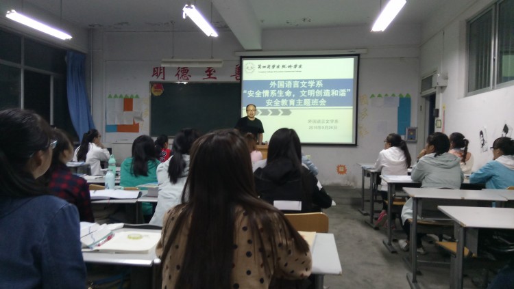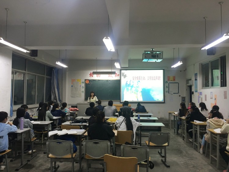 为了切实加强当代大学生的安全防范意识和应急避险能力,保障大学生的在校安全。2016年9月26日、27日晚自习我系辅导员蔡婧婧老师、刘涛老师深入班级为学生们召开了以“大学生校园安全”为主题的班会。
