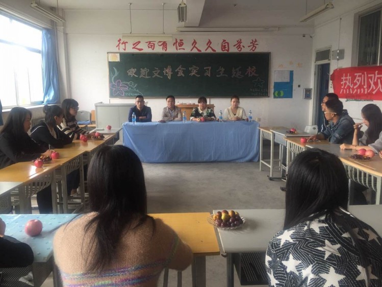 次日我系邀请就业指导服务中心梁磊主任、侯利东老师在4号楼407教室于文博会实习生进行交流座谈会。首先实习生在对这次文博交流会上所感所做所闻做了认真的汇报。接着我系党总支书记周海燕老师对本次实习进行了概括总结。此次文博会上的学习不仅开拓了他们的眼界,丰富了他们的社会经验,提升了自己的阅历,使他们更深层次地了解到了中国文化的博大精深,包容互鉴,而且感受到了中国与各国之间的和睦相处,以及单位同事的关怀与问候,同学们亲自体验后认为此次学习极大地提高了他们的综合能力和水平,使他们懂得了合作共赢的重要性,开拓了眼界,增长了知识,为他们以后的工作奠定了扎实的基础。