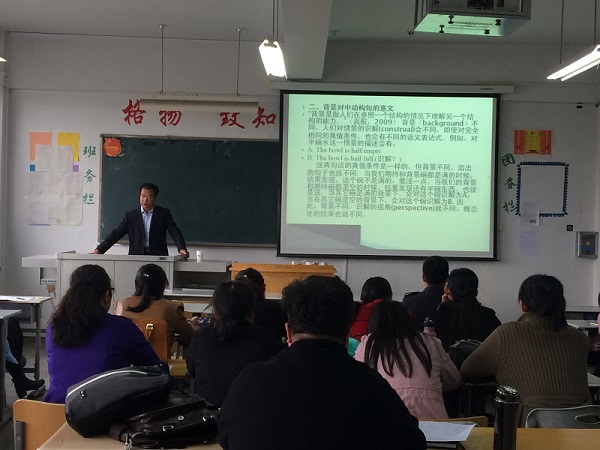2016年10月14日下午15:30,知名教授杨华堂应邀到外国语言文学系作了以“英汉中动结构的认知”为主题的讲座,我系全体教师参加了此次讲座。