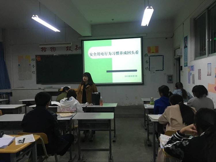 为进一步提高同学们的安全用电意识,营造安定和谐的学习生活环境。329日晚,我系组织召开以安全用电为主题的班会。此次班会中,辅导员多次强调安全用电的重要性,也有效地提高了同学们安全用电意识。