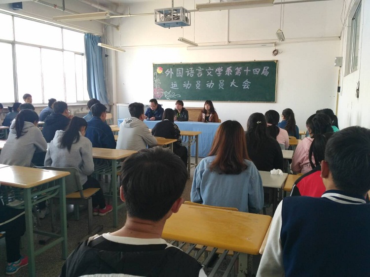 有人说:“生命在于运动"。运动中有竞争也有友谊,有公平也有正义。此次动员大会极大地鼓舞了外语系全体工作人员与运动员的斗志,并对运动会的各项工作进行了部署,提高了外语系各部的团结协作能力。祝愿外语学子在第十五届运动会上取得佳绩,赛出体育精神,赛出外语学子的风采。