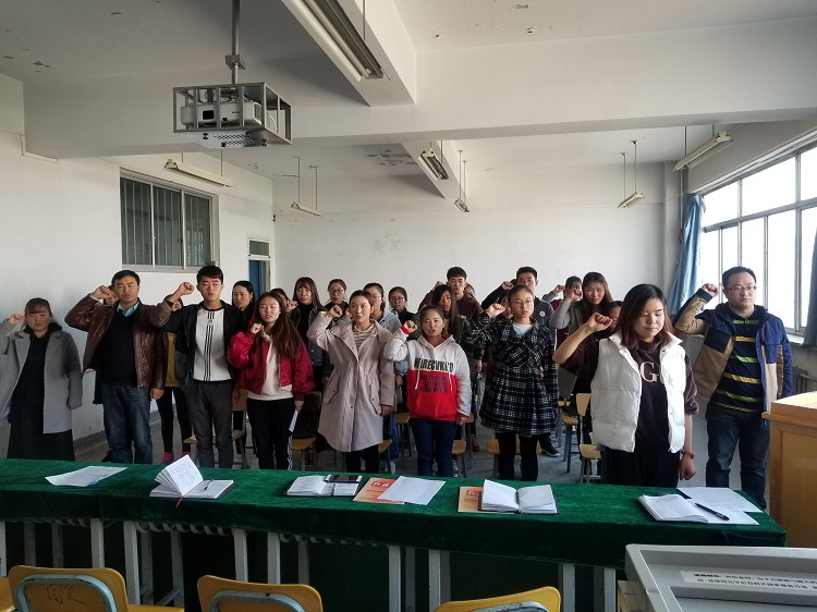 会议分别讨论通过了王卓等4名预备党员按期转正为中共正式党员和章兴平等6名入党积极分子发展为预备党员的问题。在党员转正大会上,即将转正的4名预备党员一一上台介绍自己在预备党员考察期间的表现情况,并向党支部提出转正申请。其入党介绍人宣读了该同志在考察期期间的现实表现、综合情况之后,在场的正式党员通过举手表决的形式,一致表示该同志已具备转正的基本条件,同意其按期转正;在党员发展大会上,经过前期重点考察和培养,并经党委会预审通过的6名同学一一向党组织申请,希望自己加入伟大的中国共产党。他们从自身表现,取得的成绩以及今后的打算等方面向党组织做了汇报,经过正式党员一致举手表决同意他们加入中国共产党。大会最后,全体党员向党旗宣誓,牢记入党誓词,进一步坚定了永远跟党走的坚定立场。