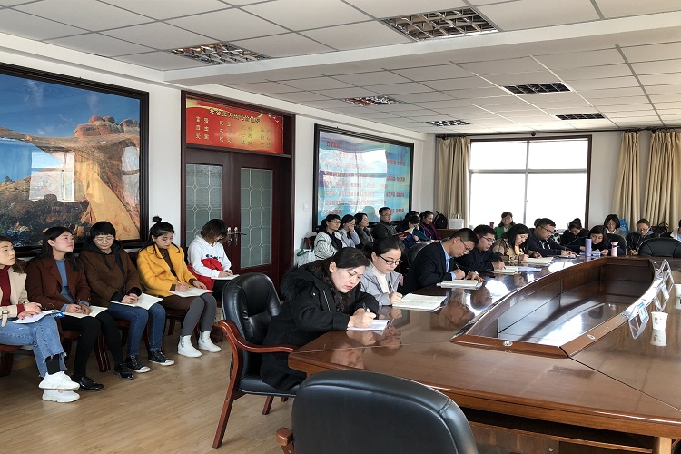 3月14日下午,外国语言文学系在行政楼二楼会议室召开全系教职工大会,会议由教学副主任韩世霞主持。