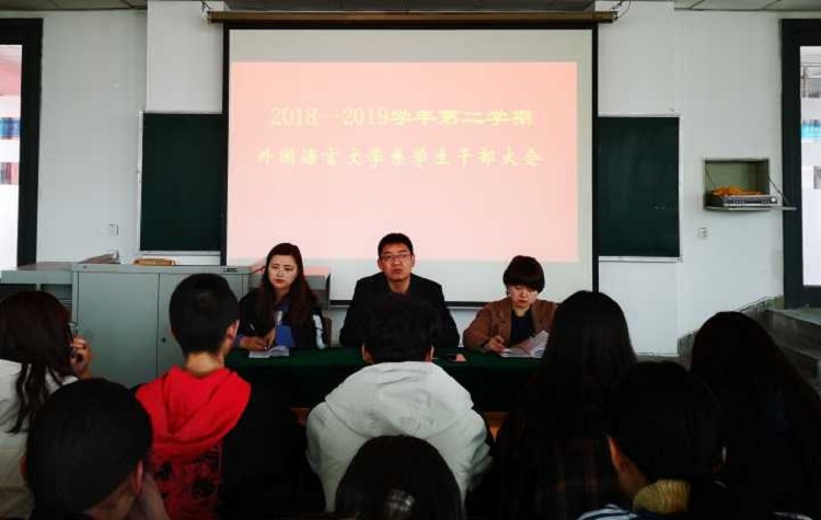 为进一步加强全系学生干部的思想政治教育,增强学生干部的“四个意识”,发挥学生干部的骨干力量,推动全系各项工作有序开展。3月27日下午,外国语言文学系在2-215教师召开了全系学生干部大会,系党总支副书记陈建平、团总支书记蔡婧婧老师及全系学生干部参加了大会,会议由系学生分会主席单兴芳主持。