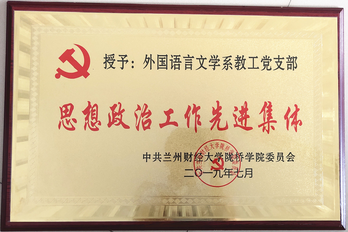 外国语言文学系教工党支部被学院党委授予“思想政治工作先进集体”荣誉称号