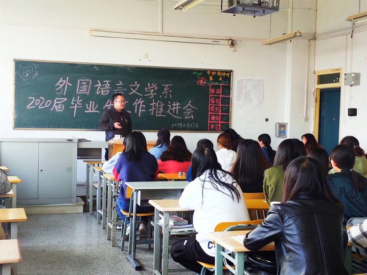 为进一步做好我系2020届毕业生考研、实习和就业工作, 10月17日下午,外国语言文学系在4-609教室召开2020届毕业生工作推进会。会议由毕业班辅导员张文魁老师主持。