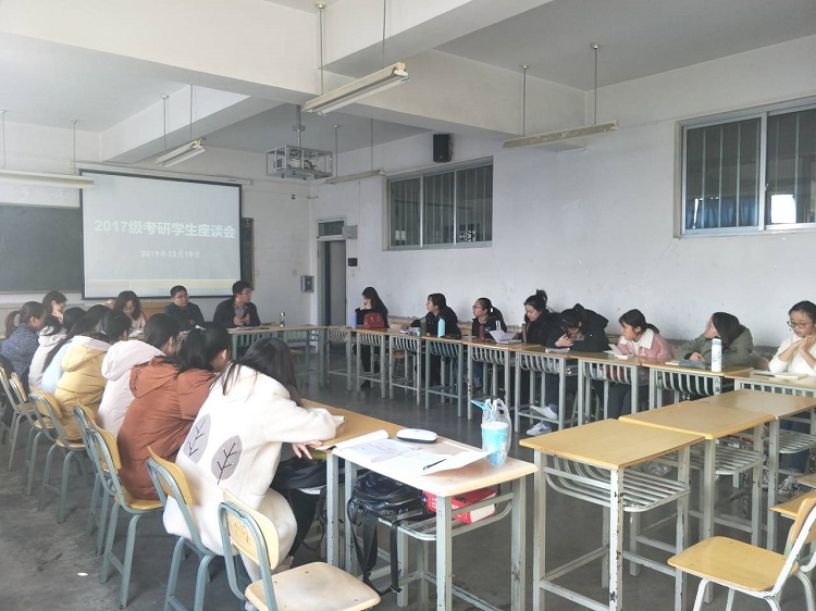 首先,所有备考学生就当前在院校选择、专业选择、备考过程中存在的问题逐一进行了交流发言。其次,各专业课老师结合当前的考研形势和自身的考研经历,就学生们关心的问题逐一谈了自己的想法和观点,帮助同学们进一步理清了思路。最后,考研工作第二小组组长陈小玲副教授做了总结讲话。她指出,考研是事关自身发展、实现人生价值的重要举措,希望同学们要做好以下几个方面的工作:一是要全面搜索目标院校和专业,了解好目标院校的招生计划、历年的分数线、考试大纲、真题,做到知己知彼;二是要有充分的心理准备来备考,既然选择了就要坚持下来;三是制定好学习计划和任务,做到学思结合、劳逸结合,达到事半功倍的效果;三是积极与考研导师做好沟通工作,对于复习过程中遇到的困难、疑惑及时沟通反映。