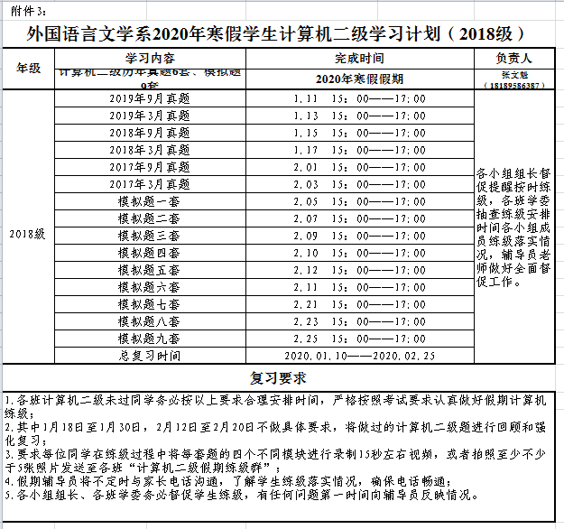 3.外国语言文学系2020年寒假计算机二级学习计划(2018级)