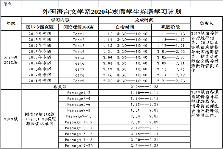 附件:1.外国语言文学系2020年寒假英语学习计划