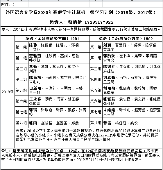 2.外国语言文学系2020年寒假计算机二级学习计划(2019级,2017级)