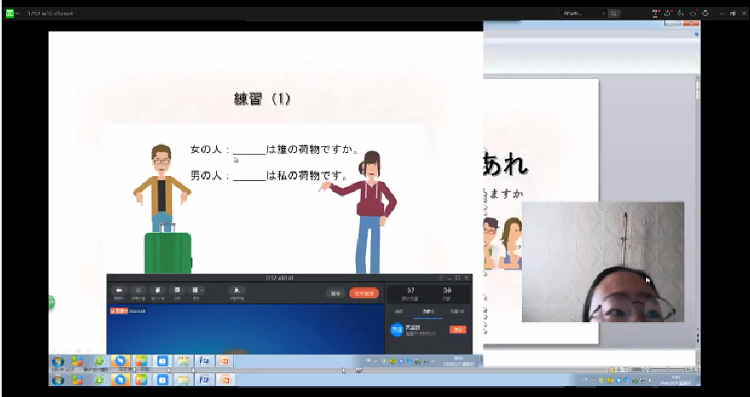 李瑾老师讲授的是第二外语,PPT简洁生动,呈现出活泼的画面感,吸引学生注意力,激发学习兴趣。课堂通过提问引入教学内容,借用造型可爱的人物角色之口结合具体会话例子进行讲解,围绕问题让学生自己思考。讲解过程穿插典型精炼的习题,做到了讲练结合。采取钉钉直播的形式,通过语音连麦和互动面板和学生进行实时互动,调动学生的积极性,达到线上教学和线下教学同一的教学效果。