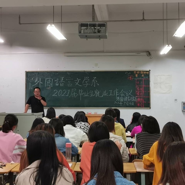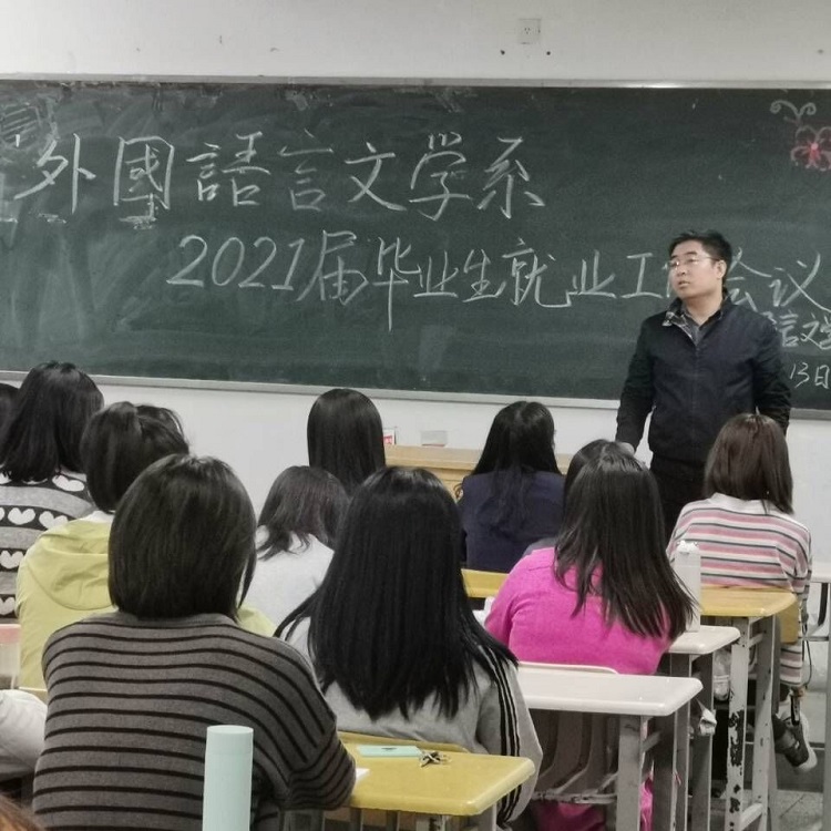 9月13日晚,外国语言文学系在4-609教室召开了2017级学生就业工作会,系主任权志成、党总支副书记陈建平、辅导员张文魁老师及全体2017级毕业生参加了会议。会议由辅导员张文魁老师主持。