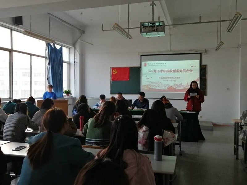 根据《中国共产党发展党员工作细则》,结合我系工作实际,经学院党委预审通过后,我系于2020年11月18日在4号教学楼609教室召开2020下半年接收预备党员发展大会,大会讨论了张婷等5名同志的党员发展问题。会议由党政秘书汪敏荣老师主持。