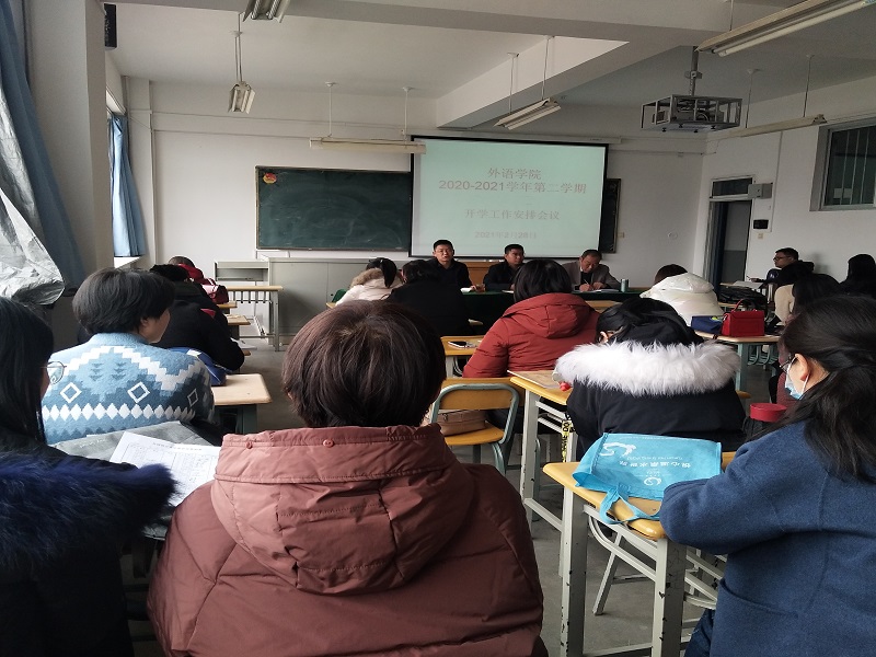 2月28日上午,外国语言文学系在4-509教室召开新学期工作部署会。会议由系党总支副书记陈建平主持,全体教职工参加会议。