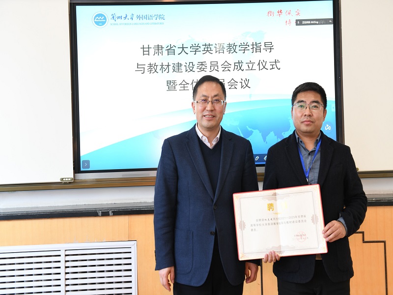 2021年3月13日,外语学院院长权志成副教授应邀赴兰州大学参加甘肃省高等学校大学英语教学指导与教材建设委员会成立仪式暨全体委员会议并接受甘肃省教育厅颁发的委员聘书。