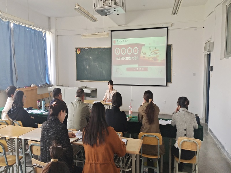 为进一步提高考研学生复试成功率,帮助初试上线学生成功录取,3月24日下午,外语学院在4-507教室举办了2021届考研学生模拟复试活动。教学总监李银仓教授出席,院领导班子成员、部分考研指导教师及准备参加复试的10名学生参加了模拟复试活动。模拟复试由副院长韩世霞主持。