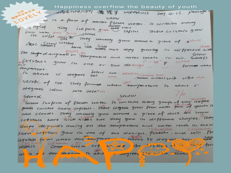 2021年4月11日晚 8:00,2018级、2019级短文听写活动正式开启。短文听写是英语专业四级考试的一个重要模块,要求考生在10分钟内全面理解所听内容的基础上,准确无误地逐字逐句写出原文。短文听写每次一篇,统一内容、统一格式、要求学生听写三遍。第一遍为黑色笔迹考试版;第二遍红笔修订,修订过程中核算分数;第三遍模拟考试完美版。整个过程持续35分钟,学生态度端正、作答认真。