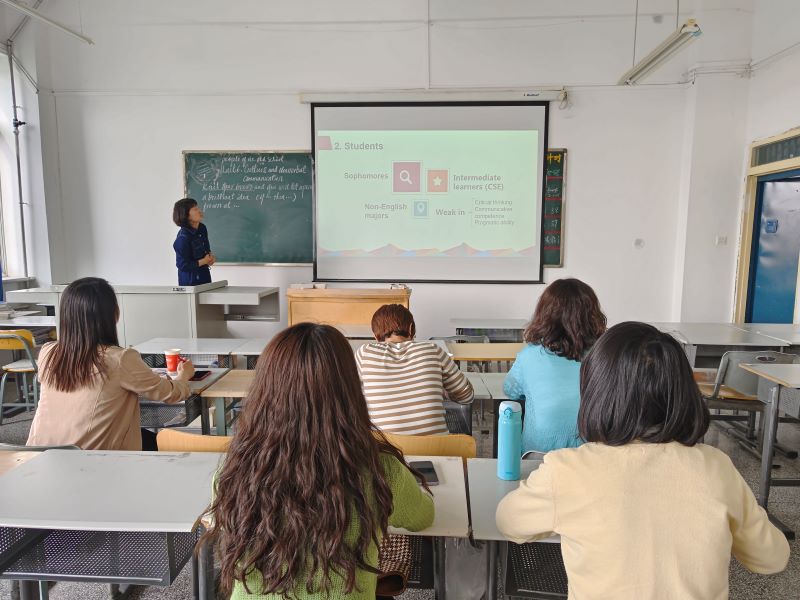 大学英语第三教研室刘莉老师从说课和讲课两个环节进行了教学展示。在说课环节,刘莉老师从教材、学情、教学目标、教学过程和教学重难点等方面阐述了教学设计理念和思路。在讲课环节,刘莉老师以“Thin Question”和“Thick Question”方式全面驱动学生掌握语言难点,习得语言技能。展示结束后,陈小玲副院长从教学目标、教学方法及教学内容等方面进行了点评,教研室成员针对教学设计的问题进行了深入探讨,提出了意见及改进建议。