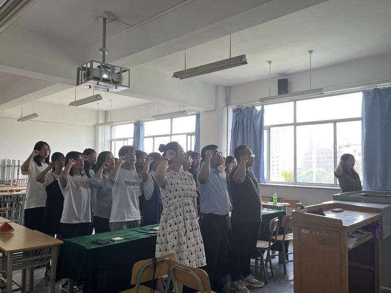 大会伊始,全体党员同志奏唱中华人民共和国国歌;会上宣布了首批过“政治生日”的党员名单,他们分别是张婷、张亚欣、张雨、张馨月、李煜并由张文魁同志向过“政治生日”的党员同志赠送政治生日贺卡;卡片既有温暖衷心的祝福,也有对党员干部的殷切希望,让党员干部留下一份深刻的“政治生日”印记,激励党员干部坚定信念、砥砺奋进。学生支部副书记刘璐同志带领全体党员重温入党誓词,面对党旗庄严宣誓,五名过“政治生日”的党员总结过去谋划未来,写下自己的生日寄语,并粘贴在许愿树上。