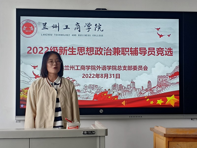 为进一步加强我院2022级班级建设及学生管理工作,培养和引导青年学生学习践行“自我管理、自我服务、自我教育、自我监督”理念,帮助新生尽快融入大学校园生活。我院于8月31日在4号教学楼 607教室召开2022级新生思想政治兼职辅导员竞选大会。出席本次大会的领导有外语学院院长张钰同志,外语学院党总支书记韩欣娟同志,外语学院党政秘书汪敏荣同志以及全体竞选学生。