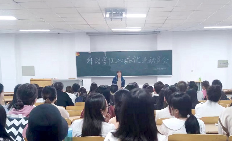 为推动学院2023届毕业生就业工作逐步开展,树立正确的就业观念,9月23日下午,外语学院在博学楼315教室召开2023届毕业生就业动员大会。党总支书记韩欣娟出席,毕业班辅导员田煜及2023届全体毕业生参加,大会由田煜主持。