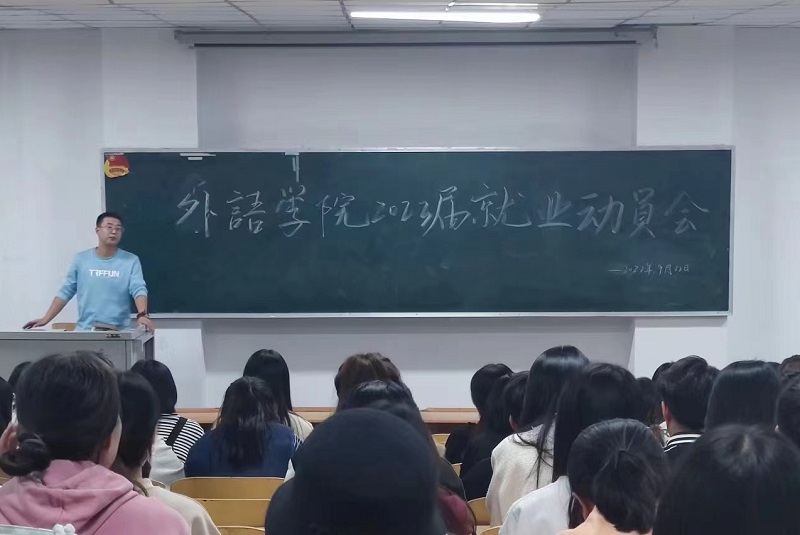 为推动学院2023届毕业生就业工作逐步开展,树立正确的就业观念,9月23日下午,外语学院在博学楼315教室召开2023届毕业生就业动员大会。党总支书记韩欣娟出席,毕业班辅导员田煜及2023届全体毕业生参加,大会由田煜主持。