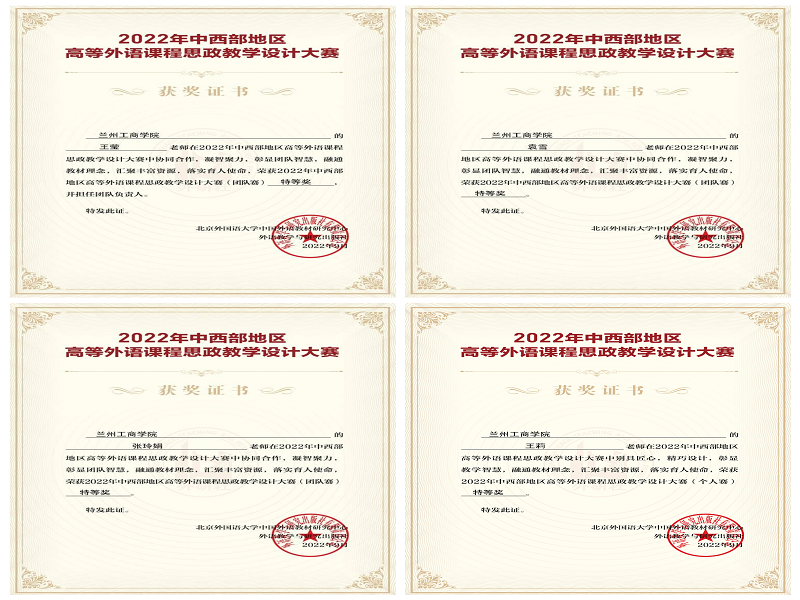 为深入实施《高等学校课程思政建设指导纲要》,全面推进高校课程思政建设,增进中西部地区外语课程教学交流与师资发展,助力高等教育高质量体系构建,服务振兴中西部高等教育战略,外语教学与研究出版社启动“2022年中西部地区高等外语课程思政教学设计大赛”。在本次大赛中,我院外语学院教师发挥出色,取得佳绩,荣获个人赛特等奖两项、一等奖三项,二等奖两项;荣获团体赛特等奖一项、一等奖两项、二等奖两项。