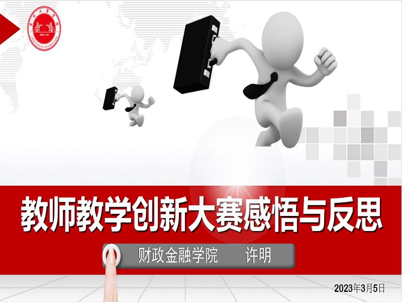 张爱荣主任向老师们介绍了甘肃省高校教师教学创新大赛基本信息。许明老师作为甘肃省高校教师教学创新大赛第一届获奖者及第二届评委,就大赛评奖机制及获奖经验做了解读和分享,从课堂教学实录视频、教学创新成果报告和教学创新设计现场汇报三个方面分析了大赛的评价维度和要点,向老师们传授参赛经验,鼓励老师们积极参赛。他谈到,参赛内容应以“立德树人”为中心,以促进教学创新、培养一流人才为侧重点。教研室各位老师认真聆听学习,并就自己关心的问题向许明老师积极请教。本次教研室会议旨在以赛促教,提升教研室各位老师对比赛的认识和参赛的积极性。