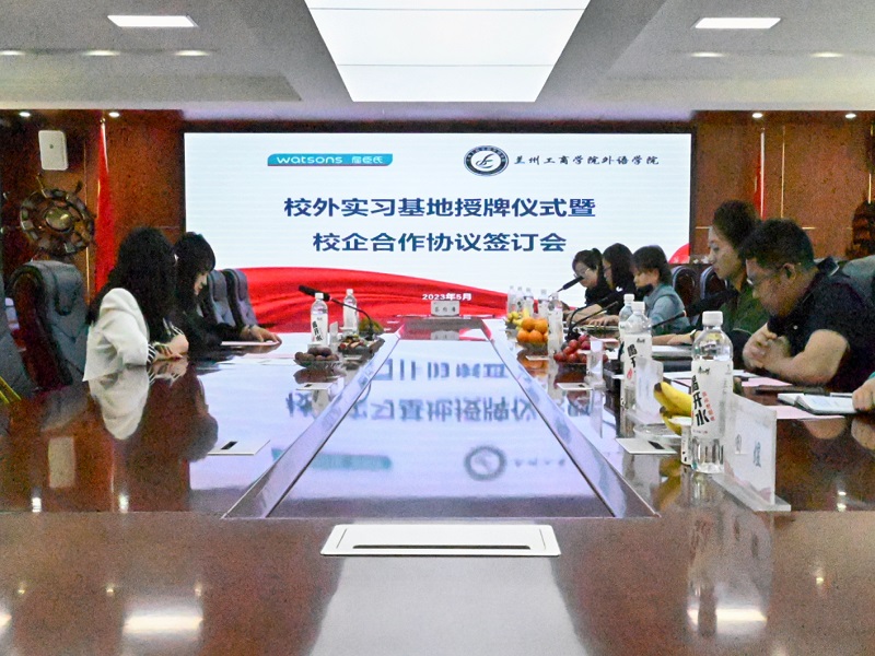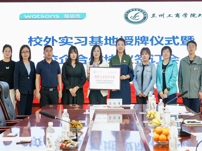 为贯彻落实教育部高校毕业生就业工作决策部署,开拓更多就业岗位,落实“访企拓岗”促就业专项行动工作要求,坚持“走出去”“引进来”多种模式,拓宽学生就业渠道。5月24日下午,学院与兰州屈臣氏个人用品商店有限公司召开校外实习基地授牌仪式暨校企合作协议签订会,屈臣氏甘肃区域HR经理刘鑫,经理助理李露,就业指导中心主任周海燕,外语学院院长张钰,党总支书记韩欣娟,教学院长权志成,院长助理詹秀伟及全体辅导员出席签约仪式,签约仪式由外语学院院长助理陈小玲主持。